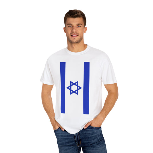 Israeli Flag Vertical Unisex Garment-Dyed T-shirt